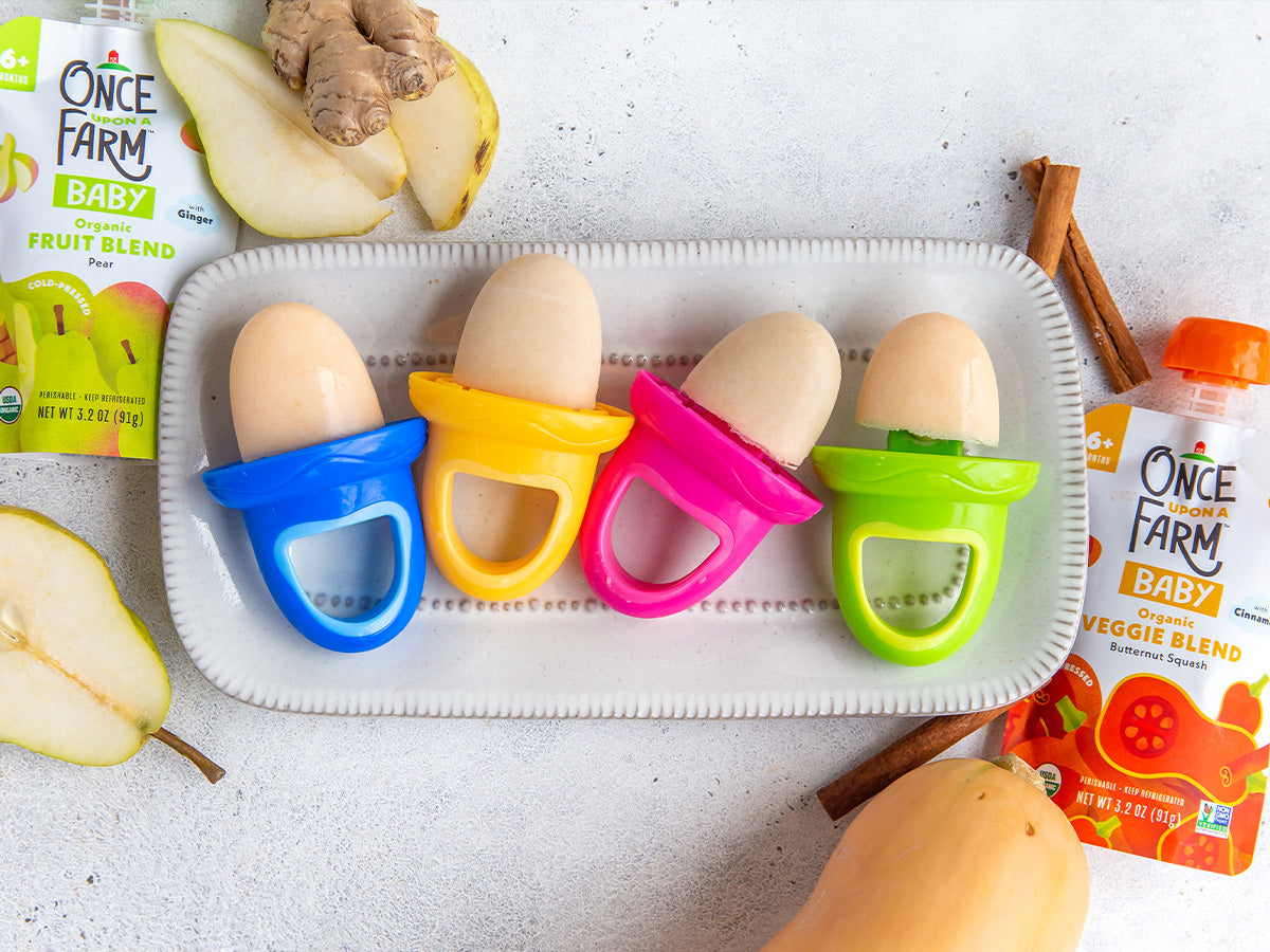 - 1 pouch Once Upon a Farm baby fruit & veggie blend