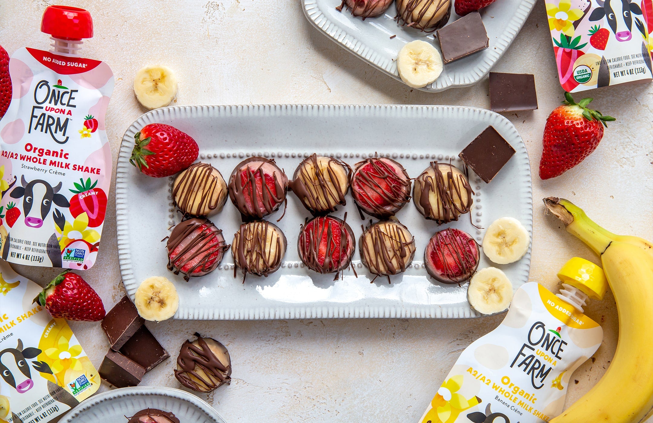 Bite-sized sweet treats, coming right up! Our creamy and delicious A2/A2 Whole Milk Shakes are taken up a notch when combined with milk chocolate. Slice, melt, squeeze, freeze, and enjoy!