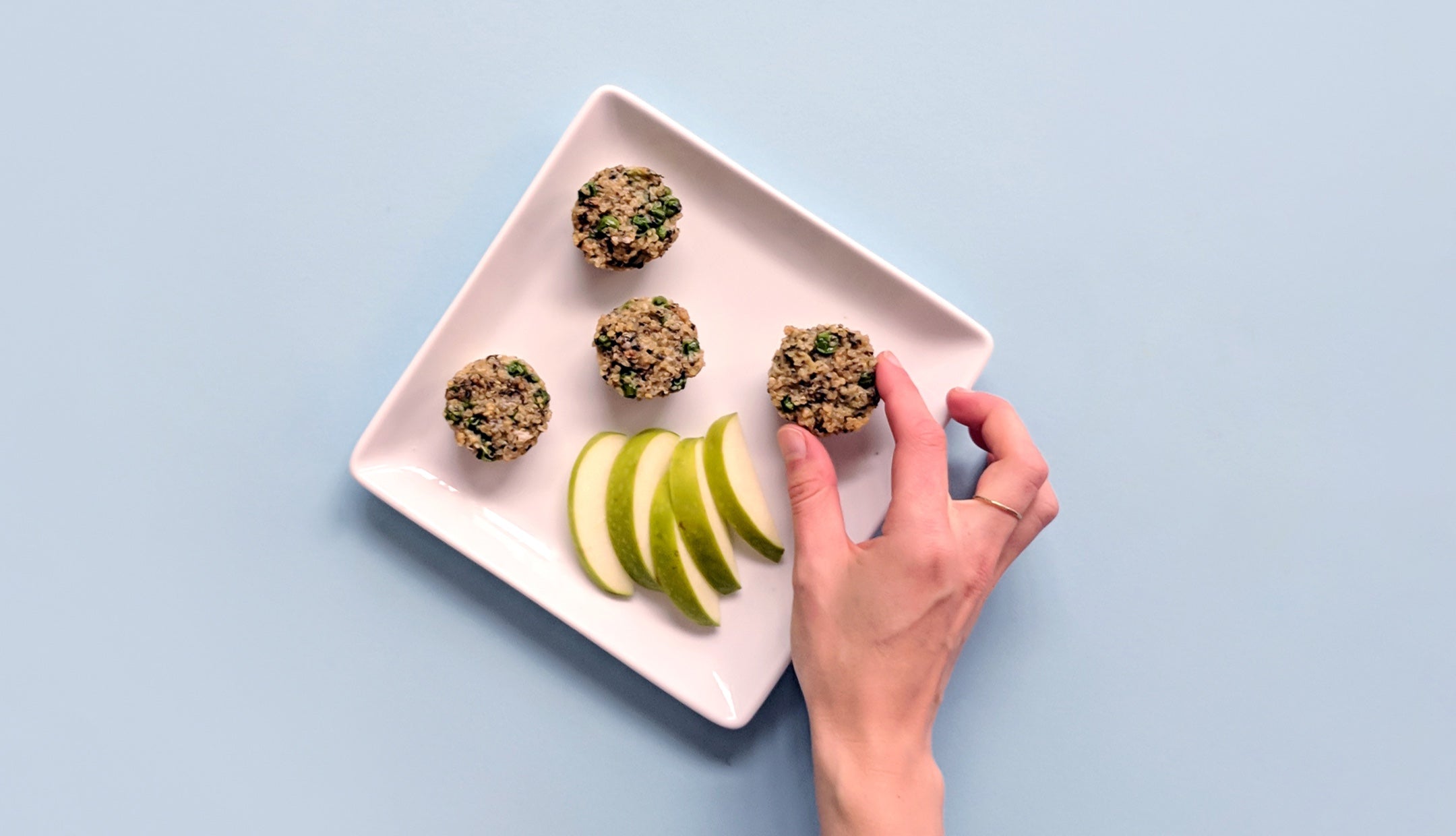 These delicious quinoa mini muffins make for a great snack or breakfast for kids, babies, and adults! Their small size is perfect for little hands. This recipe is made with one of our finger-friendly, organic meals: Peas, Zucchini, Hemp Seeds, Basil & Avocado Oil.
