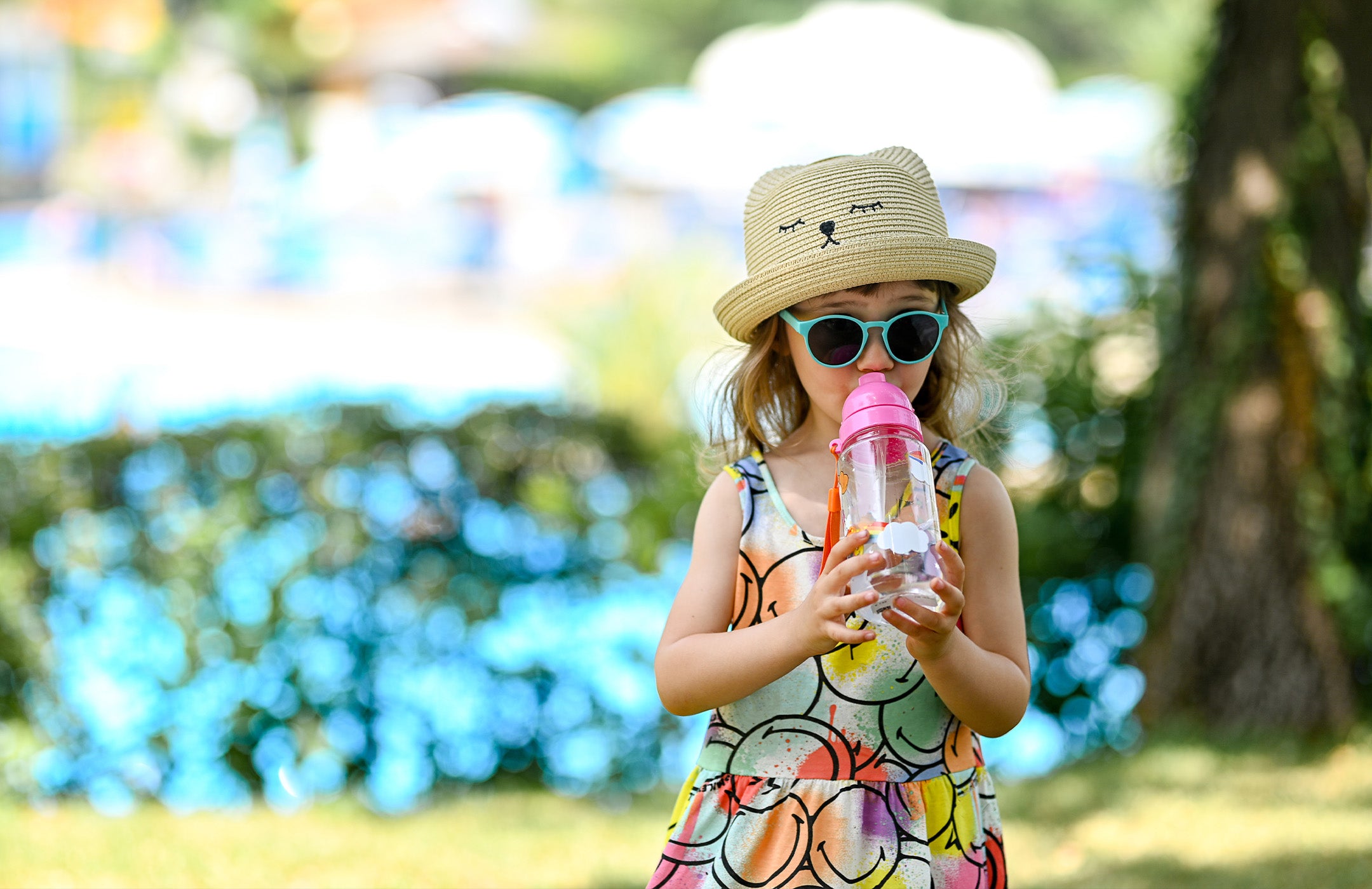 Another way to make hydrating fun is to let your little one pick out a water bottle with their favorite animal or character on it. They’re sure to want to keep that bottle on hand. A silly reusable straw will encourage liquid intake, too!